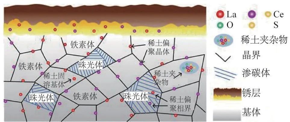 稀土原子化學(xué)性質(zhì)具備活潑、結(jié)合力強(qiáng)等特性,將稀土添加到鋼中可起到改善凝固組織、細(xì)化固態(tài)相變組織、使夾雜物變形無害化、偏聚強(qiáng)化界面、鈍化表面銹層等作用,從而顯著提高鋼的韌性、耐蝕性能、抗疲勞性能、耐熱性能等。 耐候鋼由普碳鋼添加少量銅、鎳等耐腐蝕元素而成,具有優(yōu)質(zhì)鋼的強(qiáng)韌、塑延、成型、焊割、磨蝕、高溫、抗疲勞等特性;耐候性為普碳鋼的 2一10 倍,涂裝性為普碳鋼的 1.5一10 倍。