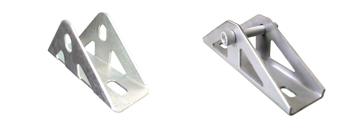 瑞豐達金屬制品光伏支架三角連接件為光伏支架配件,光伏支架三角連接件在光伏發電系統中起著固定連接的作用。光伏支架連接件除了三角連接件還有檁條連接U型連接件,它們作用都是為安裝太陽能光伏發電系統組件的安裝起到固定的作用。